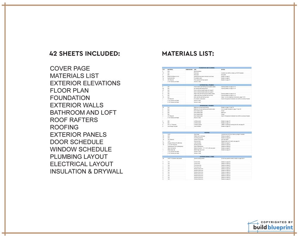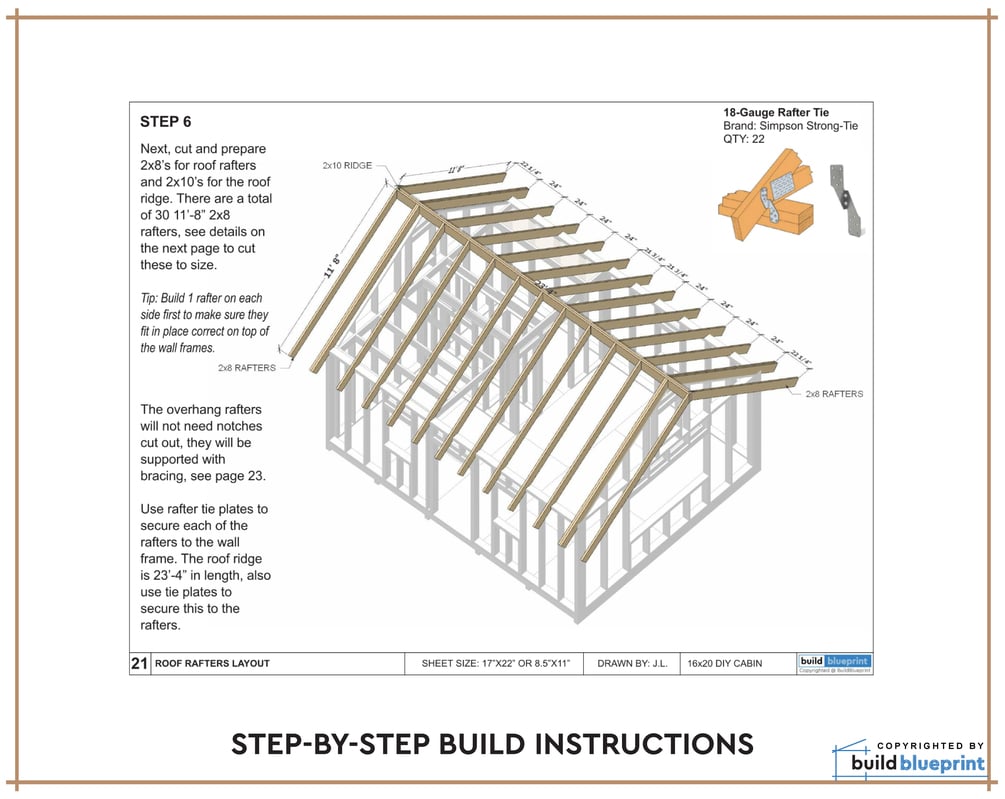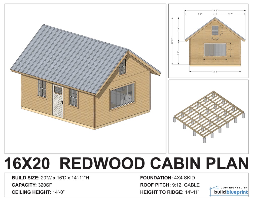 Complete DIY build plans for a 16' x 20' Wooden Cabin, including plans, elevations, foundation plan, framing plans, roof framing plan, electrical and plumbing information. This set of plans have everything you need to build the cabin, suitable for DIYer's or give it to a professional builder.