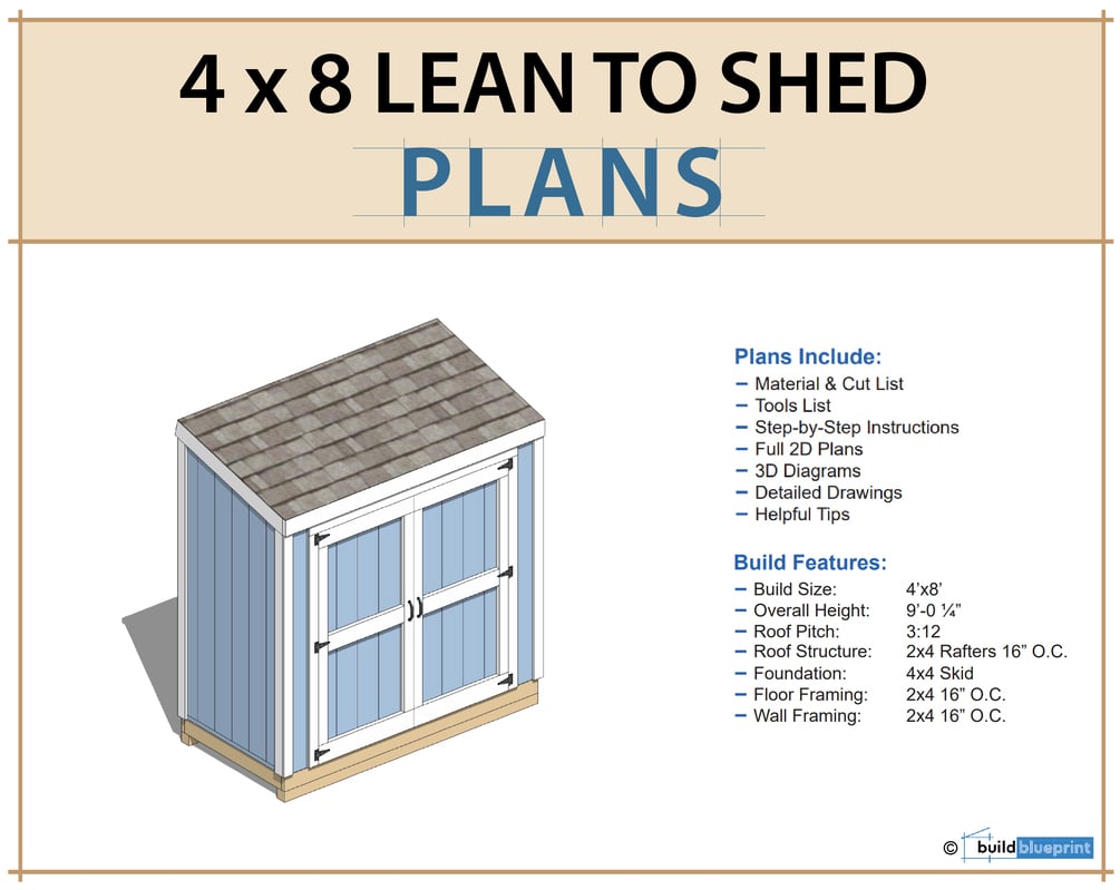 4x8 Lean To Shed Plans - PDF Download